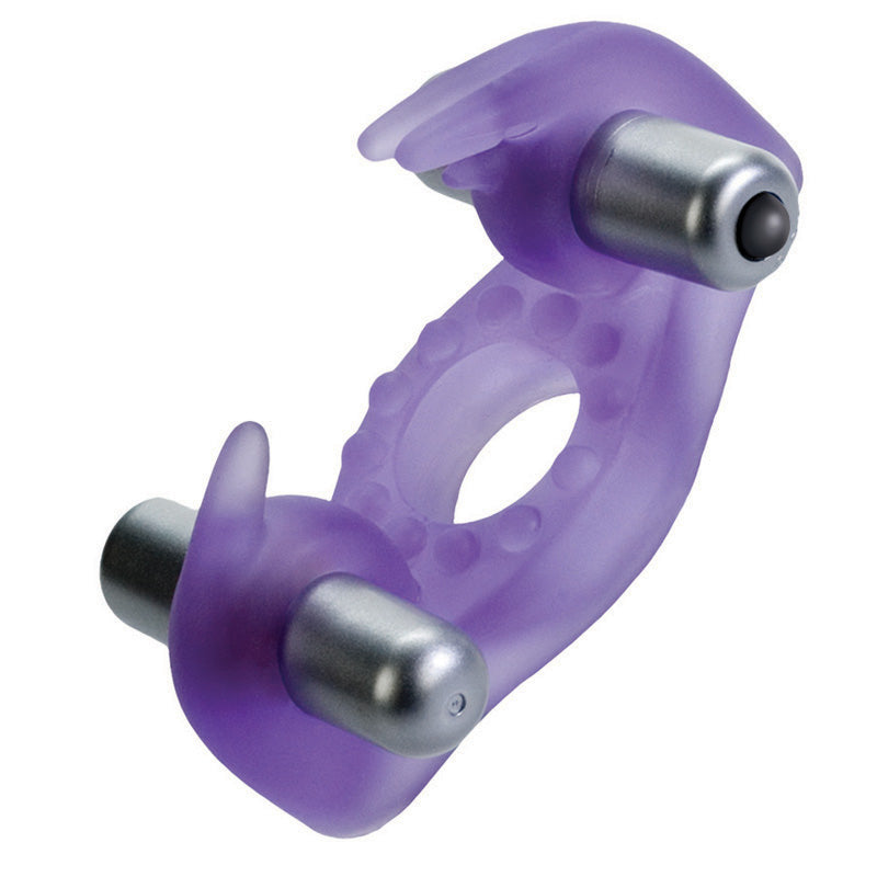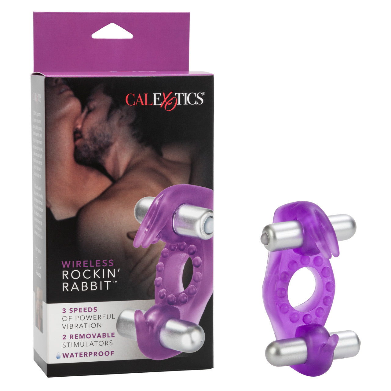 Two powerful 3-speed wireless bullet vibrators slip easily into the ring, providing dual independent control and endless ways to play. The bullets can also be removed for standalone use, allowing exploration of sweet spots all over the body. Waterproof, textured with pleasure nubs, and complete with 12 included watch batteries, the Wireless Rocking Rabbit is ready for passion anywhere.
