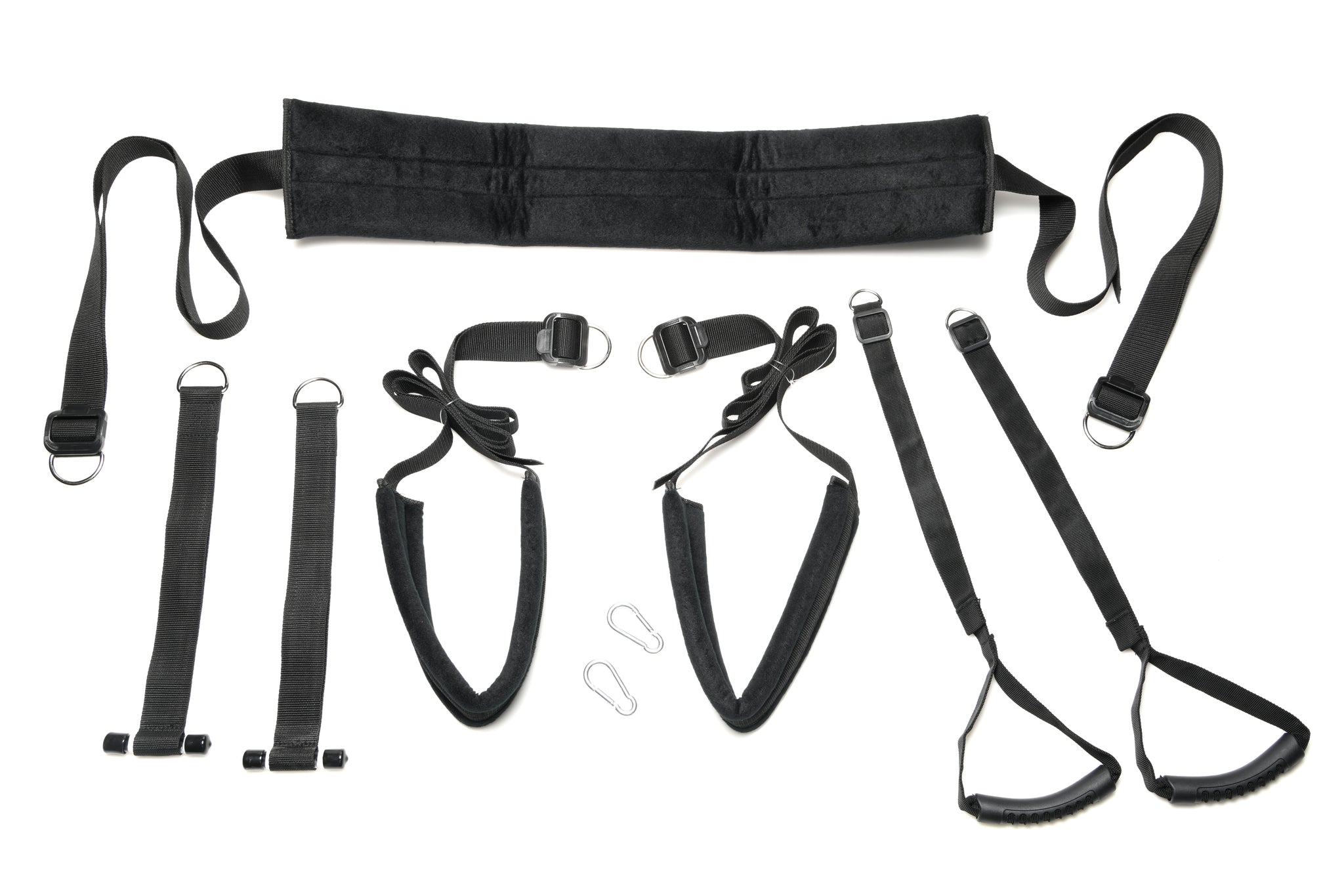 Adjustable straps, seat pad, thigh pads, and hand grips